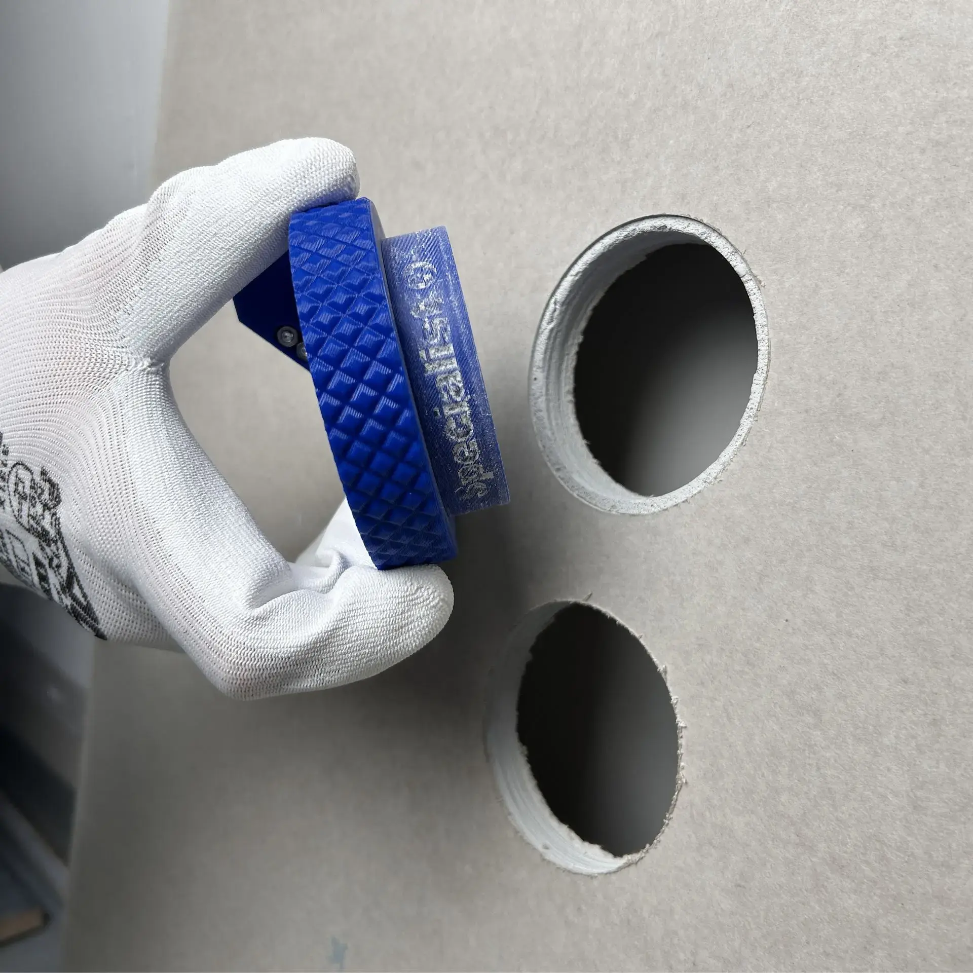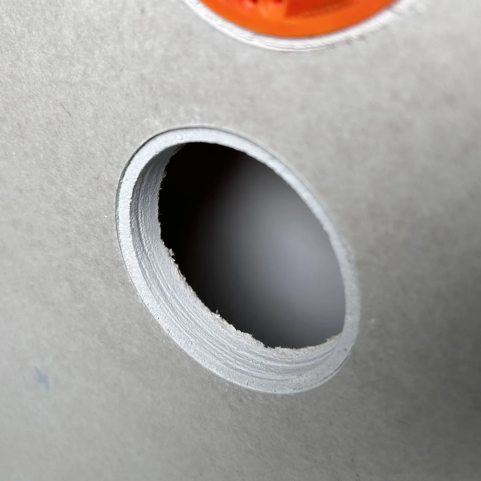 The tool is ideally suited for holes drilled with a 68 mm hole saw. It ensures that mounting boxes are installed flush with the wall surface, without protruding edges.