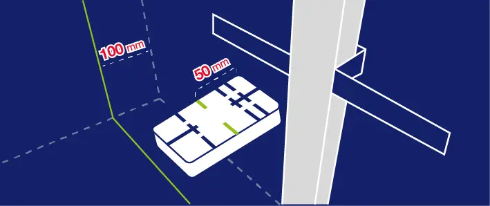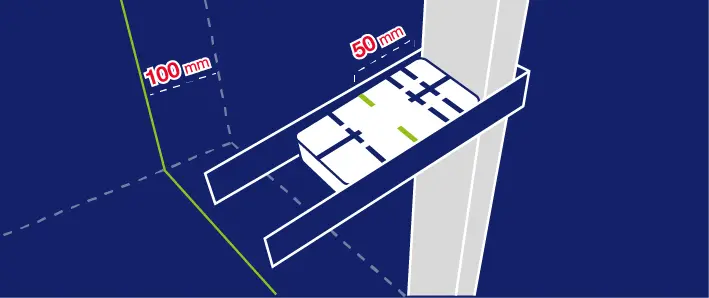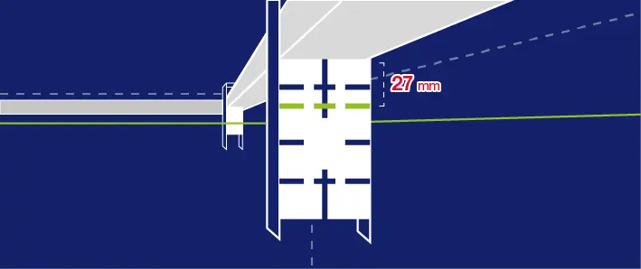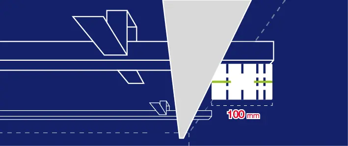 With installing the wall frame, use the middle line of the magnet (50 mm). Determine a 100 mm distance from the wall using a laser. Pusch the profile restrained by the magnet until it reaches the laser line.