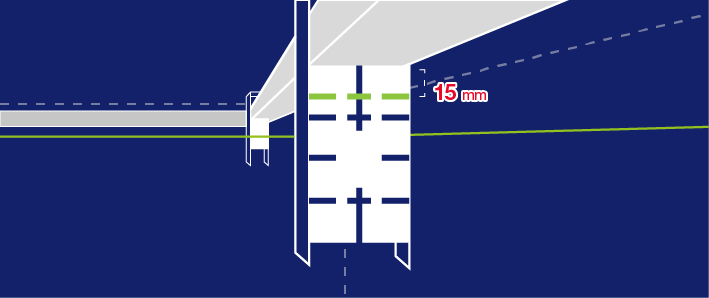 With installing the wall frame, use the middle line of the magnet (50 mm). Determine a 100 mm distance from the wall using a laser. Pusch the profile restrained by the magnet until it reaches the laser line.