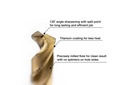 Specialist+ Titanium metal drill bit is made of the top quality M2 steel with Titanium coating (TIN), which increases the drill hardness by 30% and adds to its rigidity. The Titanium coating reduces friction, allows faster action and prevents overheating, as well as prolongs drill's service life. Recommended for steel up to 1000 N/mm2, cast iron, aluminium, brass and copper. Twist drill bit with a 135 degree angle for harder materials and reliable sharpness.