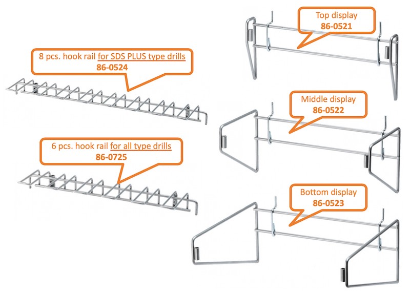 33 cm 8-slot EURO hook strip is designed for Specialist+ SDS Plus drill bits. The hook strip is suitable for the racks with all thee different depths.